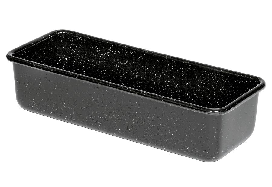 Emaille, Bördelrand, für energiesparendes Backen, schnitt- und kratzfest, backofengeeignet, fruchtsäurebeständig, bakterienhemmend und aromaneutral, leicht zu reinigen, recyclebar·schwarz / weiß (LxB): 30x10 cm