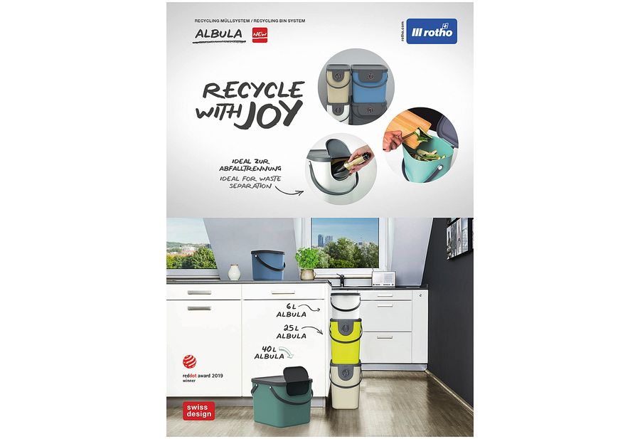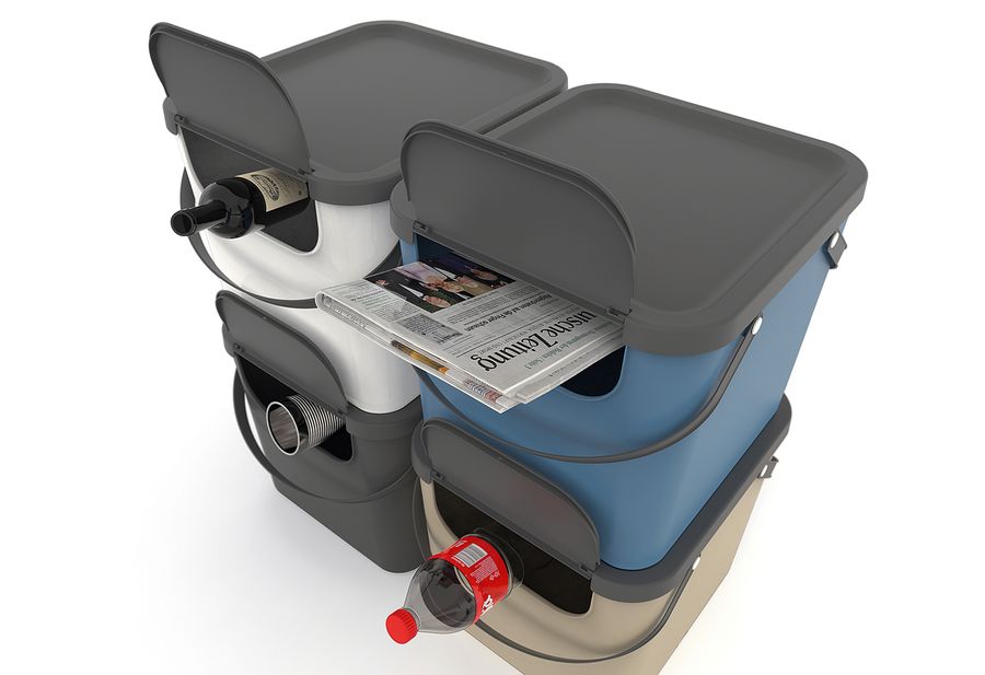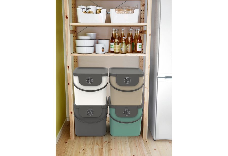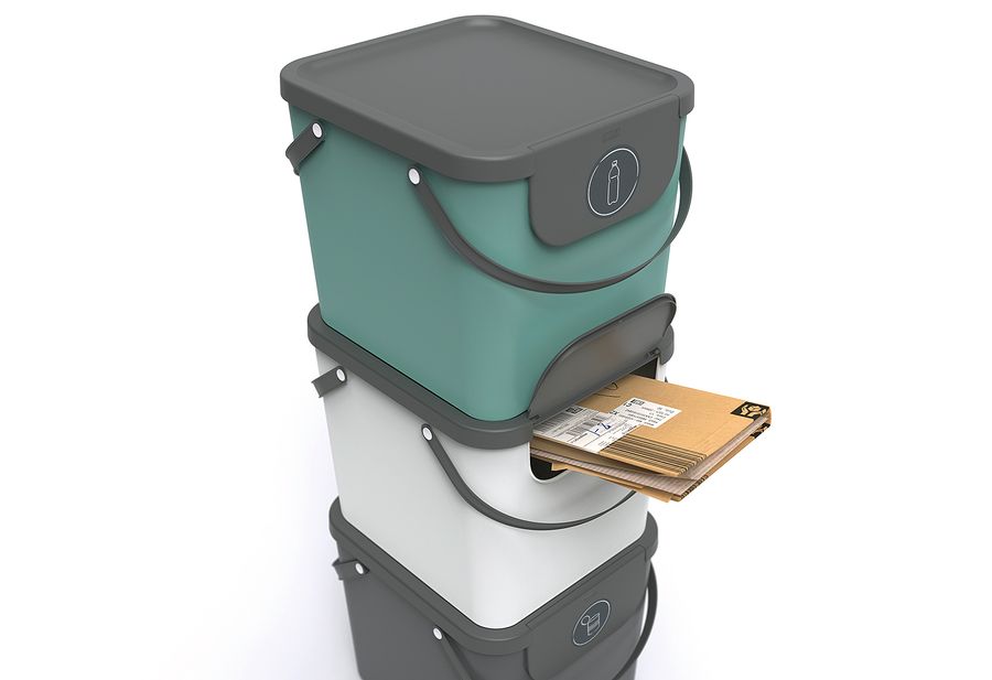 rezyklierter Kunststoff, durchdachtes Recylingsystem mit Deckel, zwei bequeme Griffe für einfaches Tragen, sechs verschiedene Aufkleber für die Vorderseite des Deckels, stapelbar, Deckel kann auch bei gestapeltem Mülltrennsystem geöffnet werden·cappuccino 40 l, (LxBxH): 39,8x35,8x33,9 cm