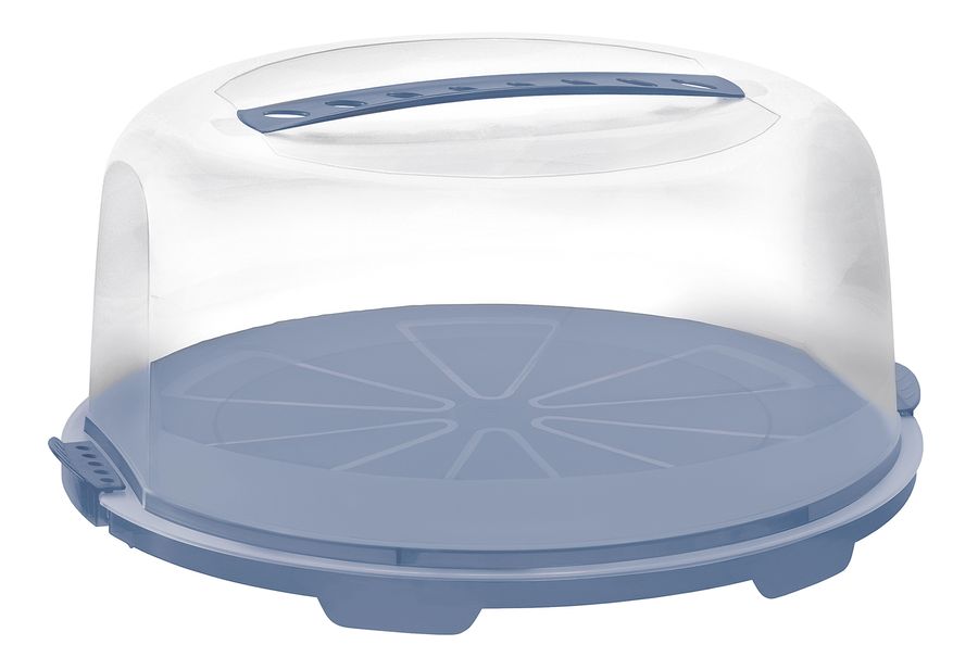 Kunststoff, tragbar, sicher verschließbar und stabil, die feinen, in den Boden eingelassenen Linien sind hilfreich, um gleich grosse Kuchenstücke zu schneiden·horizon blue (LxBxH): 35,5x34,5x16,5 cm