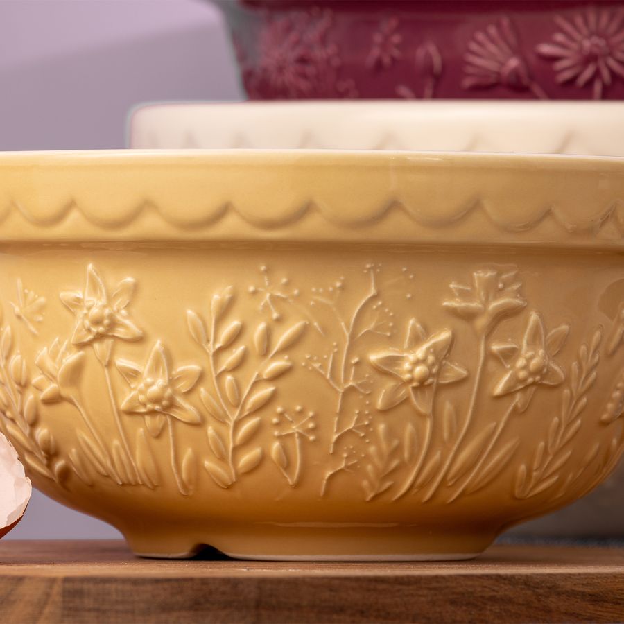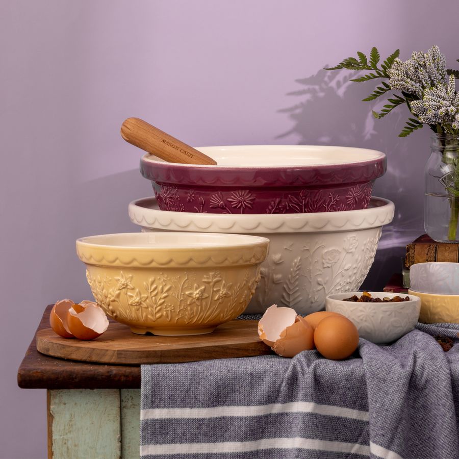 Das Design der Schale hat sich bewährt und wurde im Test der Zeit zum Designklassiker. Die Mason Cash Rührschüsseln werden aus hochwertigem, splitterresistentem Steingut hergestellt. Daher sind sie schwer genug um beim Mischen zu sicher zu stehen und gleichzeitig leicht genug, um komfortabel im Arm gehalten zu werden. Das markant gemusterte Äußere und ansprechenden Farbtöne, machen diese Rührschüsseln zum absoluten Hingucker. Gleichzeitig ist der Rand der Rührschüssel ideal zum Greifen und zum Kippen. Die breite, flache Form ermöglicht bei Bedarf auch das Kneten innerhalb der Schüssel.