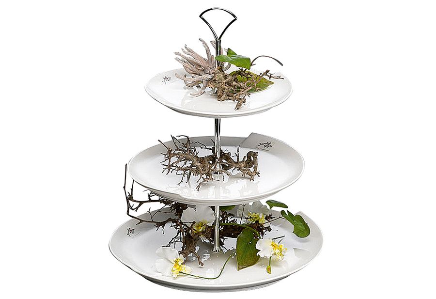 SANDRA RICH Etagere Porzellan mit Henkel 3Stufig ø20+25+29cm 39cm weiß