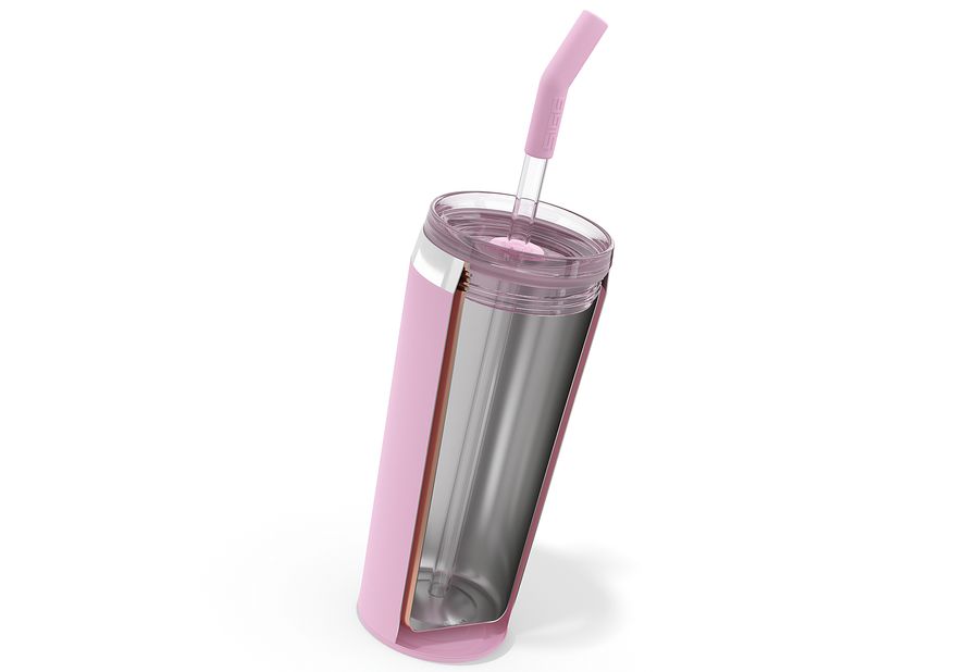 18/8 Edelstahl, vakuumisoliert, doppelwandig, kupferbeschichtet, hält Getränke bis zu 24 Stunden kalt oder bis zu 4 Stunden warm, praktischer, robuster Trinkhalm aus Glas, inkl. Reinigungsbürste·Lingonberry 600 ml, Ø 8,75 cm, H 30 cm
