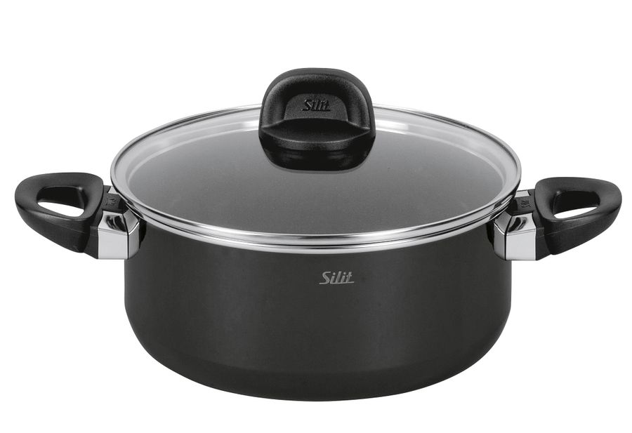 Silargan, mit Glasdeckel, schneid- und kratzfest, backofenfest, hitzebeständig bis 250°C, spülmaschinengeeignet, für alle Herdarten inkl. Induktion geeignet·black 4,4 l, Ø 24 cm, H 10,5 cm