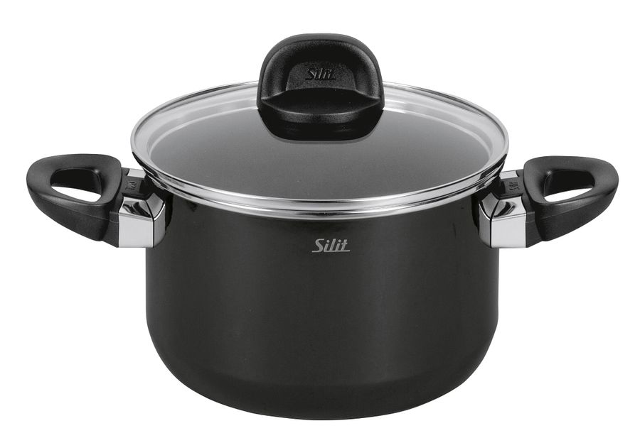 Silargan, mit Glasdeckel, schneid- und kratzfest, backofenfest, hitzebeständig bis 250°C, spülmaschinengeeignet, für alle Herdarten inkl. Induktion geeignet·black 3,7 l, Ø 20 cm, H 12,8 cm
