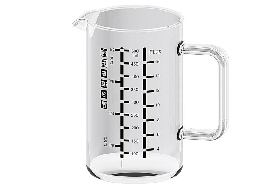 Glas, mit Skala, mit Henkel, hitzebeständig: +300°C / -40°C - geeignet für Mikrowelle, Geschirrspüler und Gas- und Elektroherde 500 ml, (HxBxT): 13,5x12,9x8,5 cm·