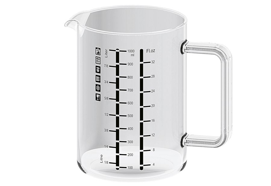 Glas, mit Skala, mit Henkel, hitzebeständig: +300°C / -40°C - geeignet für Mikrowelle, Geschirrspüler und Gas- und Elektroherde 1 l, (HxBxT): 15x16x10,5 cm·
