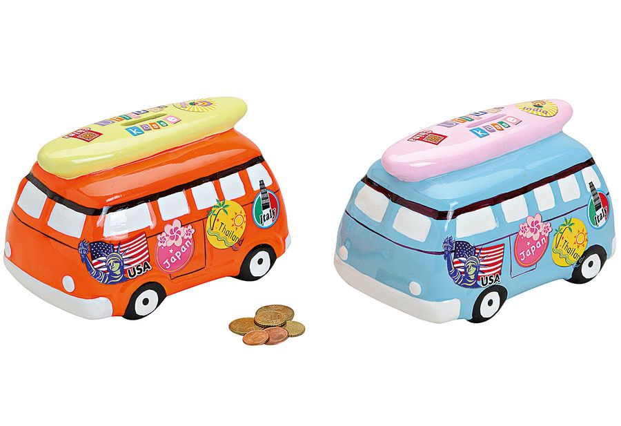 Spardose Bulli Keramik sortiert mit Stopfen 16x11x11cm farbig sortiert