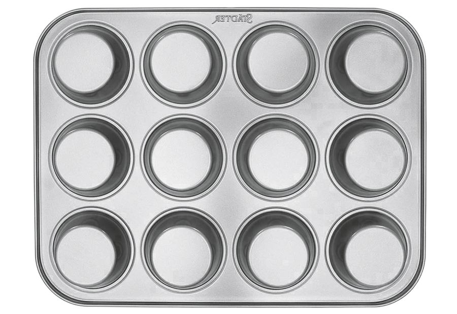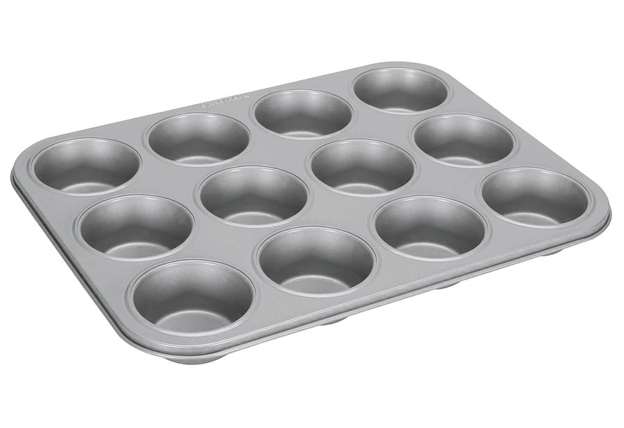 Zwölf ganze Muffins oder Cupcakes können mit dieser Backform auf einmal gebacken werden, sehr hochwertige und langlebige Beschichtung, Backform mit heißem Wasser, mildem Spülmittel und einem Tuch reinigen, keine Kratz- oder Reinigungsschwämme und keine Kratz- oder Scheuermittel verwenden, nicht in der Spülmaschine reinigen, temperaturbeständig bis 250 °C, PFAS frei·silberfarben matt