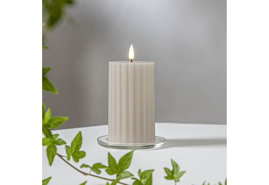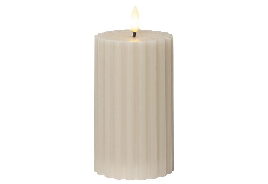 STAR TRADING LED Wachskerze Flamme Stripe Batterie Timer 15x7,5cm beige