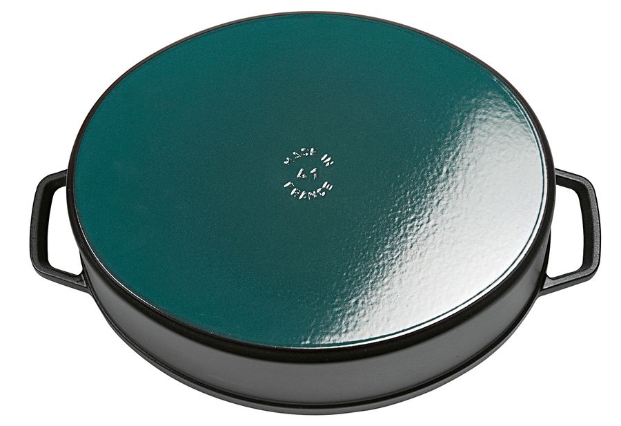 Gusseisen, speichert Wärme und gibt sie langsam und gleichmäßig wieder ab, sehr gut geeignet für schonendes und gesundes Garen, innen matt-schwarz emailliert, spülmaschinengeeignet, für alle Herdarten inkl. Induktion geeignet·schwarz 12 l, Ø 41 cm