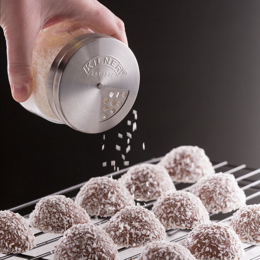 Das Kilner® 250ml Aufbewahrungsglas mit Streuer ist die perfekte Lösung für die Aufbewahrung von trockenen Zutaten, wie Puderzucker, Kakao, Kräuter und Schokolade. Der Deckel hat 3 Öffnugnen, welche durch einfaches Drehen den Inhalt dosieren oder sicher Verschließen. Aufbewahren und dosieren Sie getrocknete Kräuter, Parmesan, Schokoladenstreusel und vieles mehr.