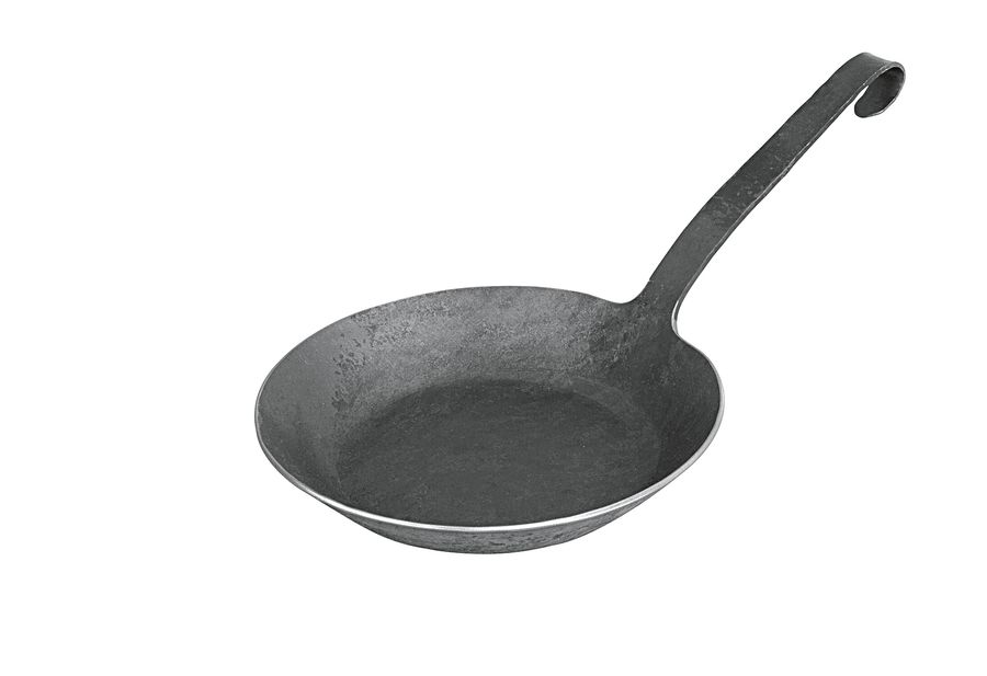 freiform-warmgeschmiedete Pfanne, jede Pfanne ein Unikat, aus einem Stück Eisen gefertigt, Pfanne ist kratz- und schnittfest und besitzt somit eine enorme Lebensdauer, wichtig: Eisenpfannen entfalten ihre Wirkung am besten, wenn der untere Durchmesser mit der Kochplatte übereinstimmt, für alle Herdarten inkl. Induktion geeignet· Ø 20 cm