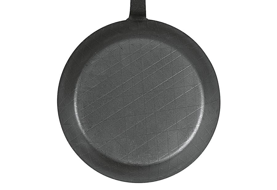 warmgewalztes Grobblech, geprägt, Pfannenboden Ø 25 cm, geschlagen, rustikales Aussehen, mit geschmiedetem Hakenstiel am Pfannenboden angeschweißt, höhere Verdichtung - bessere Brateigenschaft, Pfanne ist kratz- und schnittfest und besitzt somit eine enorme Lebensdauer, wichtig: Eisenpfannen entfalten ihre Wirkung am besten, wenn der untere Durchmesser mit der Kochplatte übereinstimmt, für alle Herdarten inkl. Induktion geeignet· Ø 32 cm, H 4,5 cm
