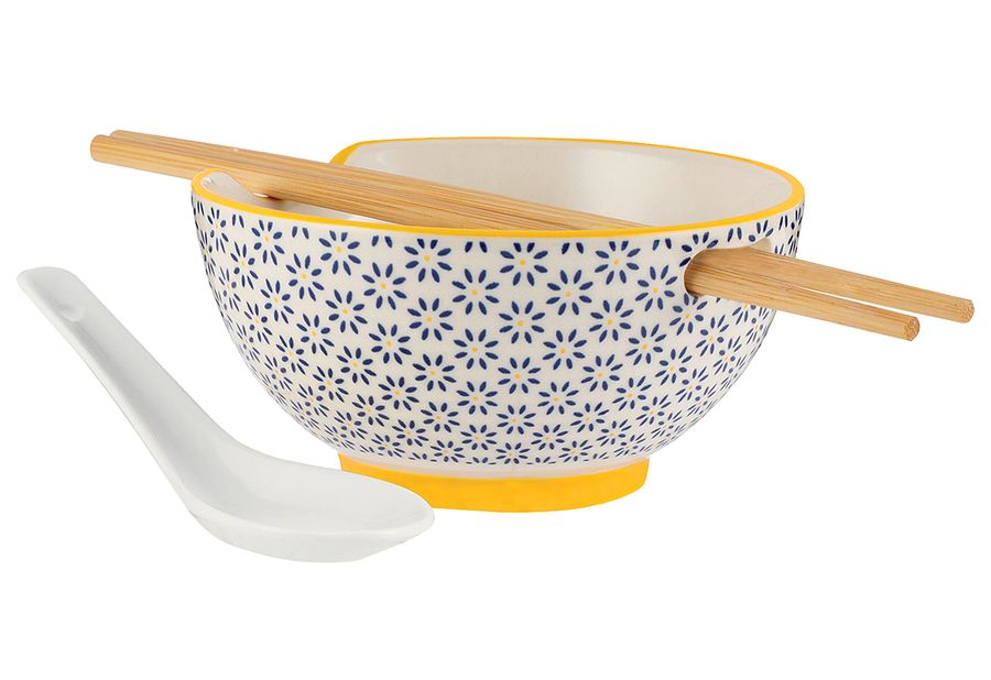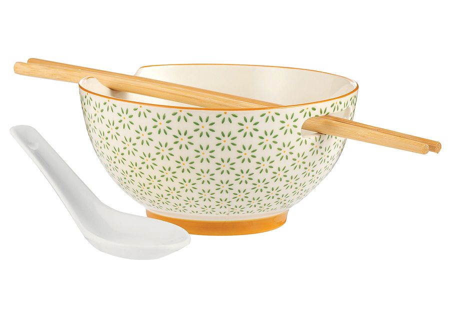 Steinzeug / Bambus, Inhalt: Reis- & Suppenschüssel, Essstäbchen, Löffel (LxBxH): 24x13,5x8 cm·Fachhandel exklusiv