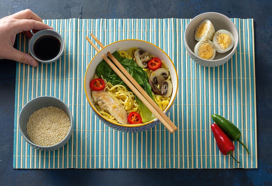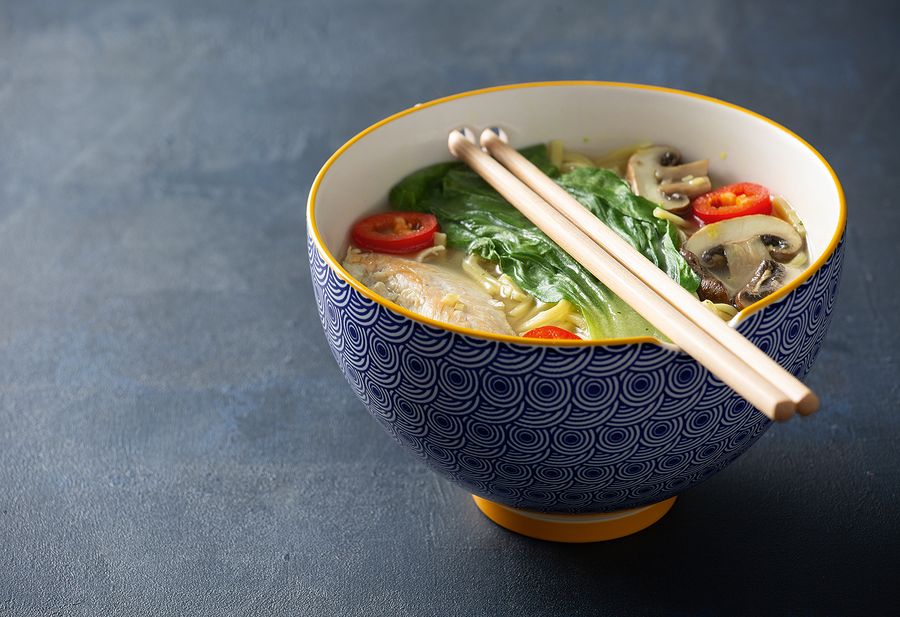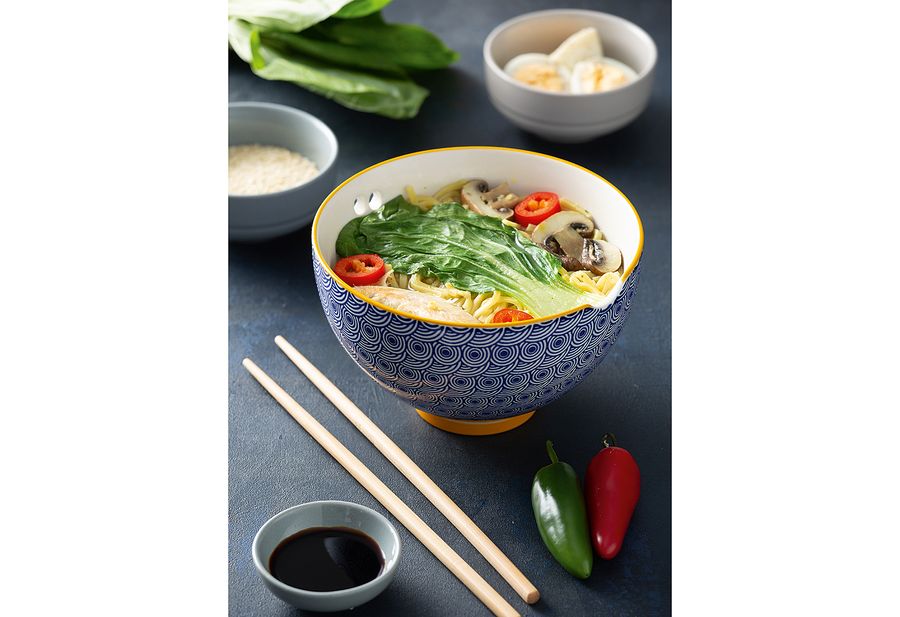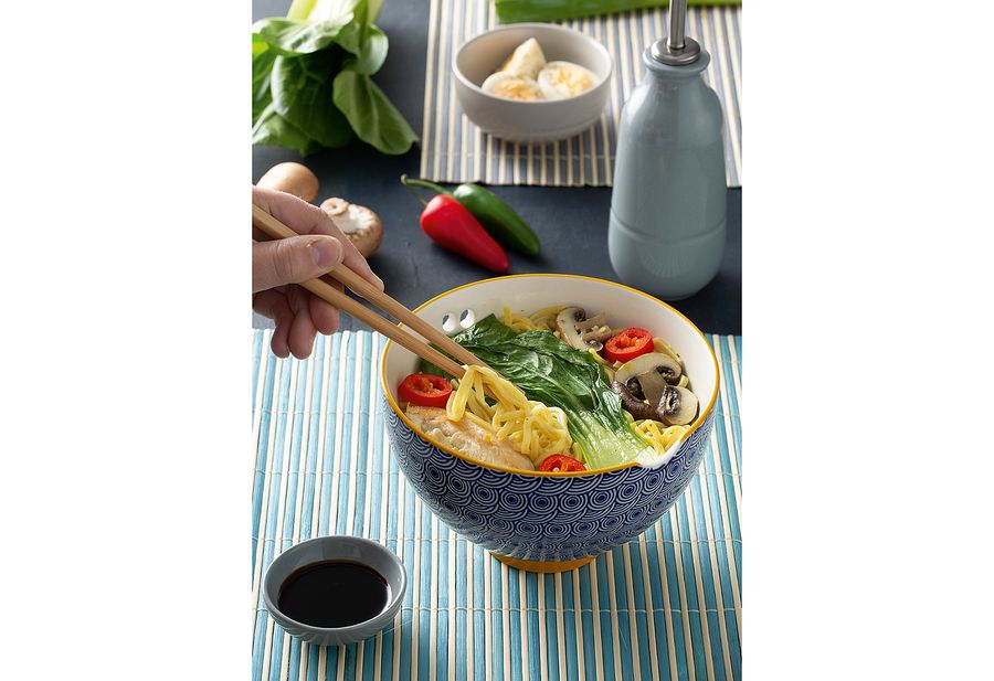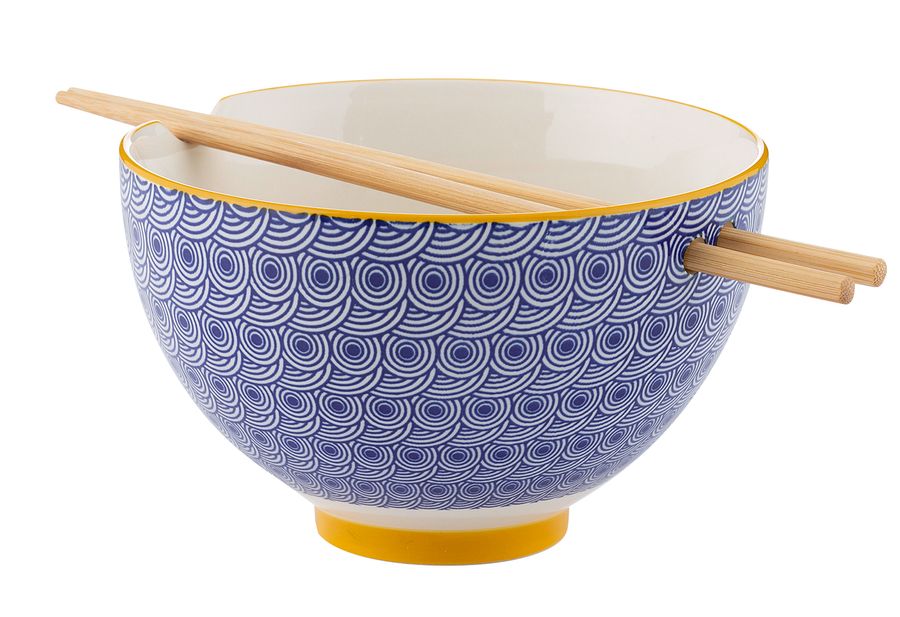 Steingut / Bambusholz, inklusive Essstäbchen·blau / gelb (LxBxH): 16x16x10 cm·Fachhandel exklusiv