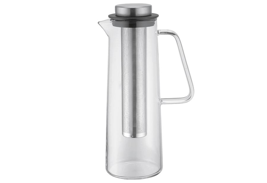 hitzebeständiges Borosilikatglas mit tiefem Edelstahl-Dauerfilter, perfekt für Tee, Eistee, Slow-Brew-Kaffee, aromatisiertes Wasser oder gekühlte Säfte, auch ohne Filter z.B. für Milch verwendbar 1 l, 8,5x14,5x26 cm