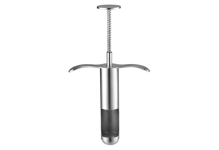 Edelstahl, perfekt zum schnellen und einfachen Entkernen von Kirschen und Oliven, durch den integrierten Federmechanismus besonders leichtgängig, Arretierungsmöglichkeit für eine besonders platzsparende Aufbewahrung, äußerst stabil und langlebig, einfach zu reinigen und spülmaschinenfest (LxBxH): 11x2,5x18 cm