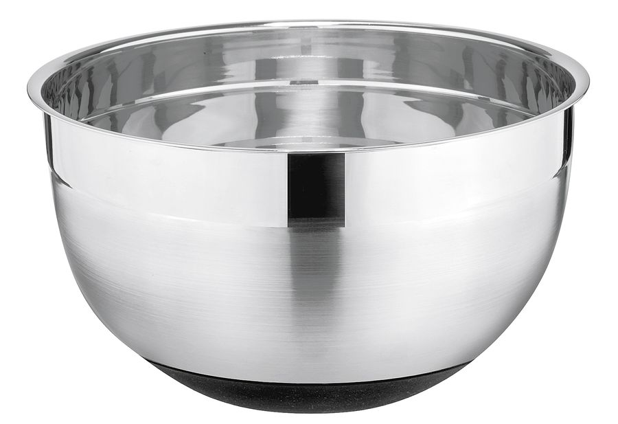 Edelstahl / Silikon, hohe Materialstärke für optimale Stabilität und Langlebigkeit, hochwertiges, satiniertes Design mit hochglanzpolierten Streifen, rutschfester und silikonbeschichteter Boden, spülmaschinengeeignet, Handreingung empfohlen, passender Frischhaltedeckel aus Glas optional erhältlich 5 l, Ø 24 cm, H 14 cm
