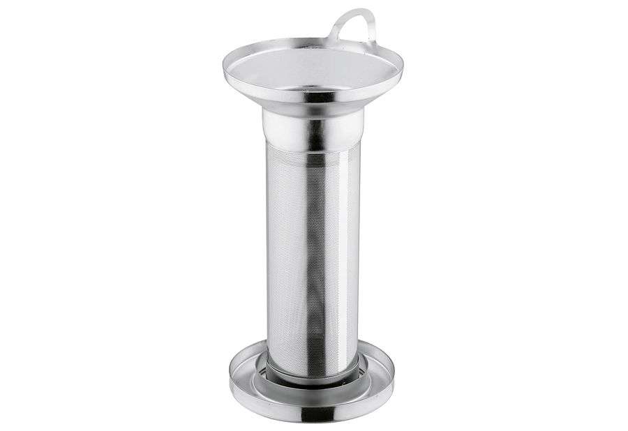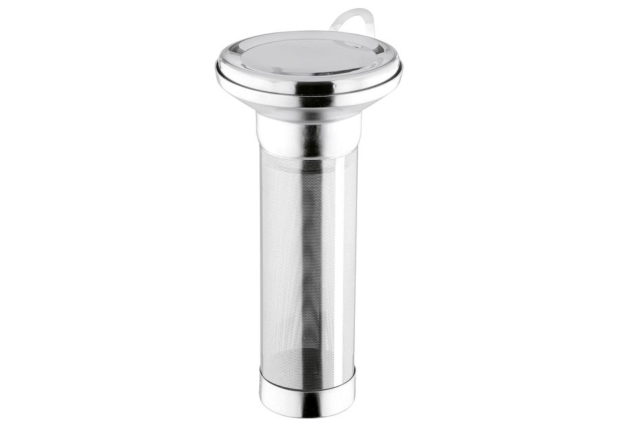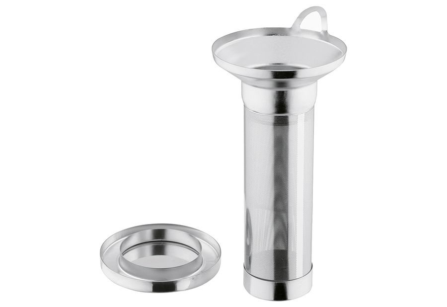 Edelstahl, extra tief, optimal für schmale Behälter und Isolierkannen, ultrafeine Laserlochung, Abtropfschale auch als Deckel einsetzbar, spülmaschinenfest Ø 7,2 cm, H 13,5 cm