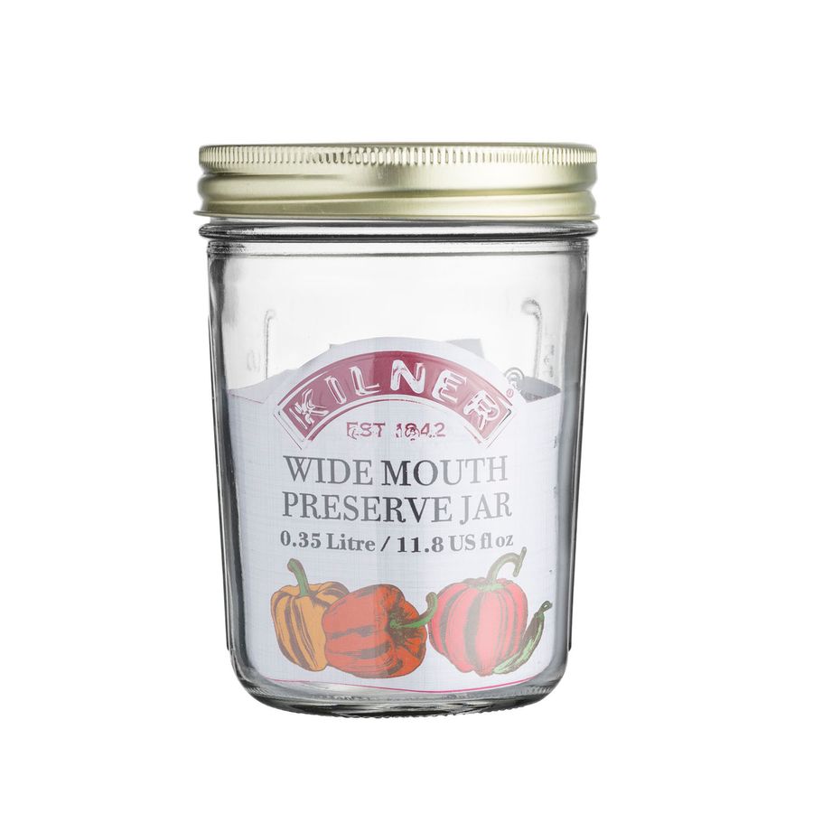 Die Kilner® Gläser mit weiter Öffnung sind ideal für die Konservierung von Obst und Gemüse als Ganzes. Die große Öffnung macht einfaches Befüllen auch von großen Lebensmitteln möglich. Das Glas enthält einen einfach zu bedienenden Metall-Schraubverschluss, welcher aus einem 2-teiligen Metallschraubdeckel und einer austauschbaren Vakuumdichtung besteht. Dieses Einmachglas ist mit 350 und 500 ml Fassungsvermögen erhältlich.