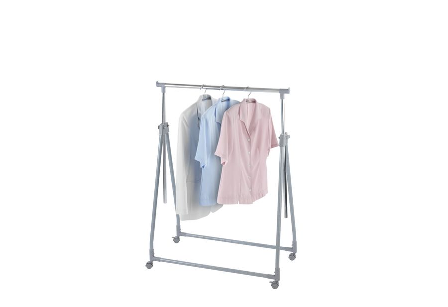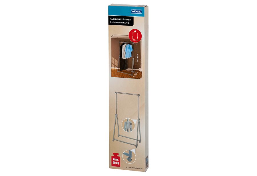 Chrom / Kunststoff, platzsparend zu verstauen, auf 11 cm zusammenklappbar, zum Aufbewahren, Lüften und Transportieren von Kleidung, mit 4 Rollen zum leichten Fortbewegen, Traglast 40 kg, stufenlos höhenverstellbar· H 100 - 168 cm
