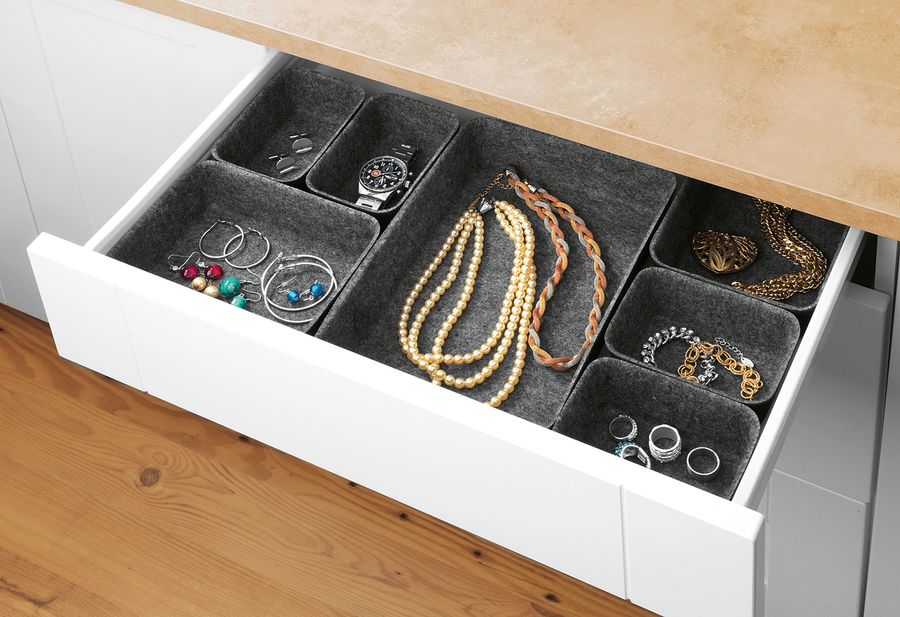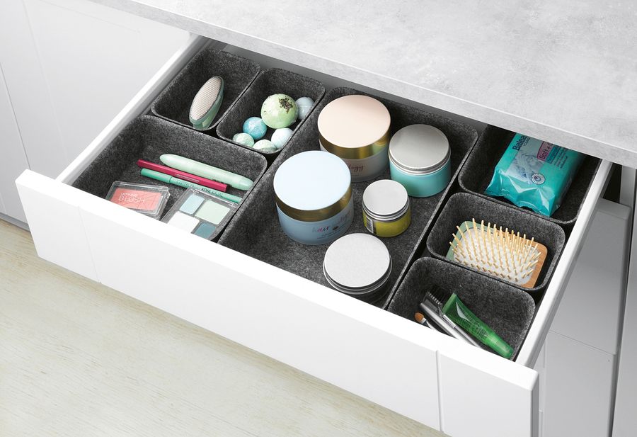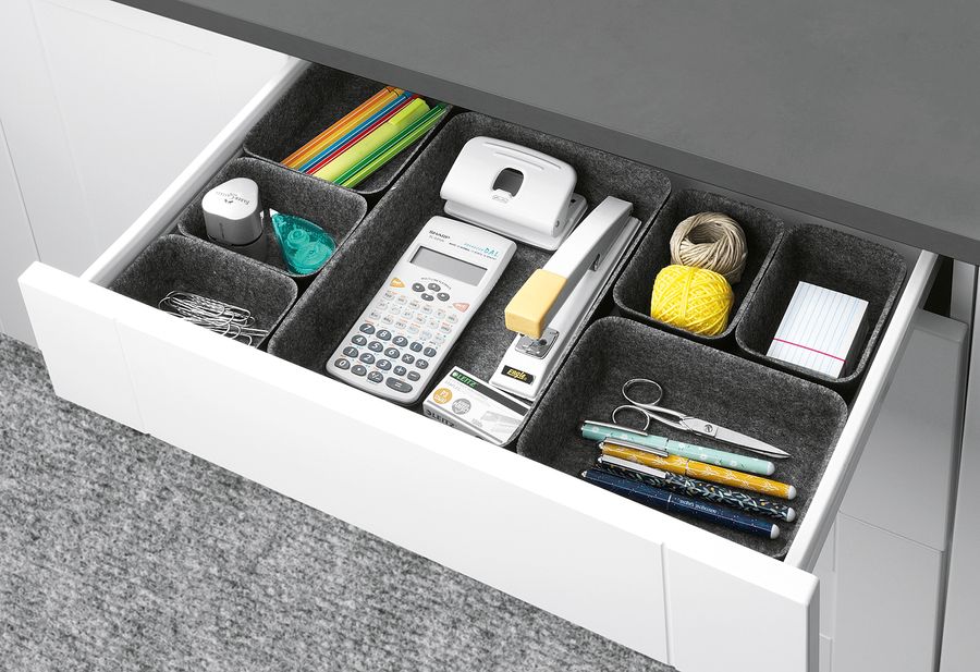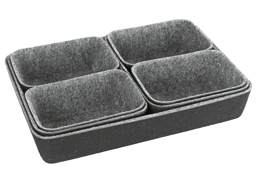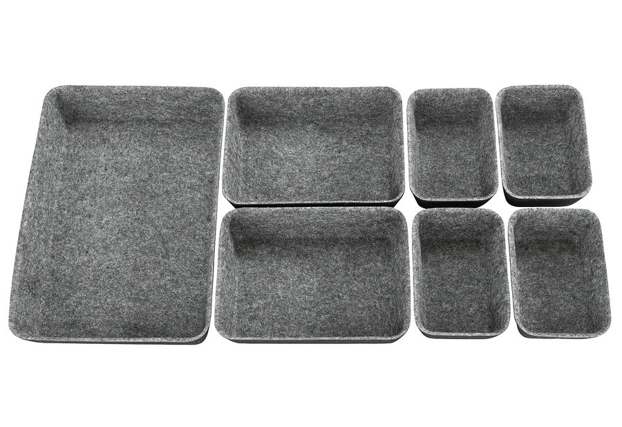 recycelter Polyesterfilz / 100 % Polyester, 7-teilig in drei verschiedenen Größen, zahlreiche Kombinationsmöglichkeiten, individuell befüllbar, für große oder kleine Schubladen·grau (BxHxT): 28,5x5x20 cm