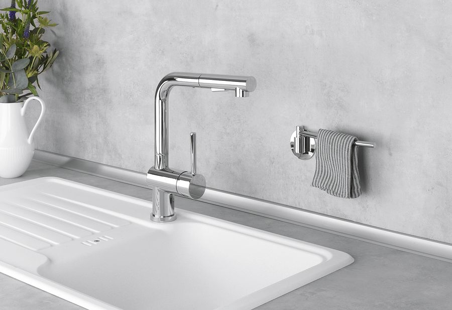 verchromter Stahl, Design-Halter für Spültücher mit Spezial-Klebepad, schnelle und einfache Montage, fester Halt auf allen glatten Oberflächen, rückstandslos wieder entfernbar·silber glänzend (BxHxT): 23x6,5x3 cm