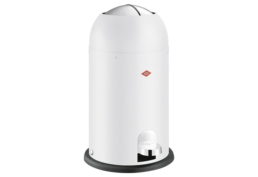 Stahlblech, pulverbeschichtet / Kunststoff (Einsatz, Bodenring) / Edelstahl (Einwurfklappen), perfekt für kleine Küchen oder Büro, mit Fußtritt bedienbar, schließt sanft und sicher, Bodenring am Korpus schützt empfindliche Böden··weiß matt 12 l, (BxH): 30x51 cm