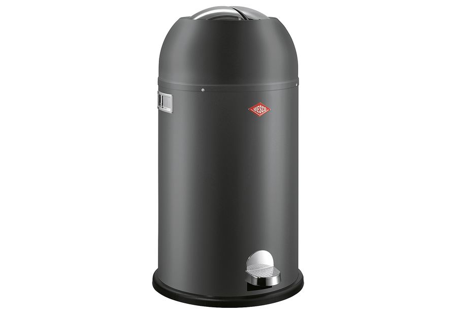 Stahlblech, pulverbeschichtet / Kunststoff (Einsatz, Bodenring) / Edelstahl (Einwurfklappen), lässt sich durch einen einfachen Fußtritt leicht öffnen und schließt dank des eingebauten Dämpfers geräuschlos, der Bodenring schont den Bodenbelag·graphit matt 33 l, (BxH): 37,5x69 cm