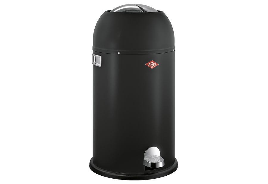 Stahlblech, pulverbeschichtet / Kunststoff (Einsatz, Bodenring) / Edelstahl (Einwurfklappen), lässt sich durch einen einfachen Fußtritt leicht öffnen und schließt dank des eingebauten Dämpfers geräuschlos, der Bodenring schont den Bodenbelag·schwarz matt 33 l, (BxH): 37,5x69 cm