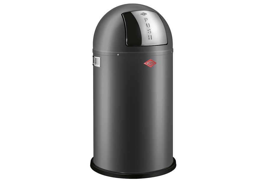 Stahlblech, pulverbeschichtet / Kunststoff, mit Edelstahlklappe, Einsatz aus Metall, ein Kunststoffrand am Korpus schont den Fußboden, der Leitring im Innern verhindert, dass Müll zwischen Korpus und Einsatz rutscht··graphit matt 50 l, (BxH): 40x75,5 cm