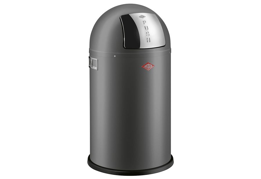 Stahlblech, pulverbeschichtet / Kunststoff, mit Edelstahlklappe, Einsatz aus Metall, ein Kunststoffrand am Korpus schont den Fußboden, der Leitring im Innern verhindert, dass Müll zwischen Korpus und Einsatz rutscht·graphit matt 22 l, (BxH): 35x63 cm