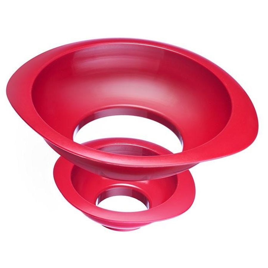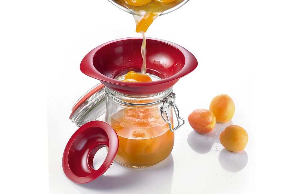 Kunststoff, 2 Einmachtrichter - 3 Funktionen: Die kleinen oder großen Einmachtrichter separat nutzen - oder beide Elemente zu einem großen Einfülltrichter zusammenstecken. Maße Trichter: groß Ø oben 13 cm - Ø unten 7,2 cm, klein: Ø oben 7,5 cm - Ø unten 3,8 cm, für sämtliche Gläsergrößen, spülmaschinengeeignet·rot