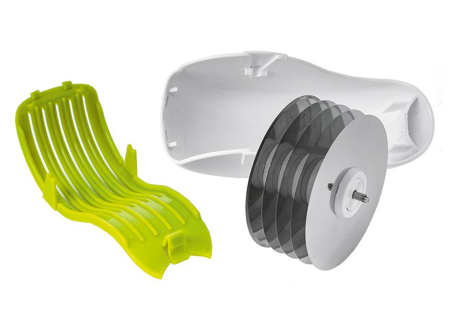 hochwertiger ABS Kunststoff, mit 5 beidseitig geschliffenen rostfreien Edelstahl-Schneidrollen· (LxBxH):14,5x6,5x9 cm