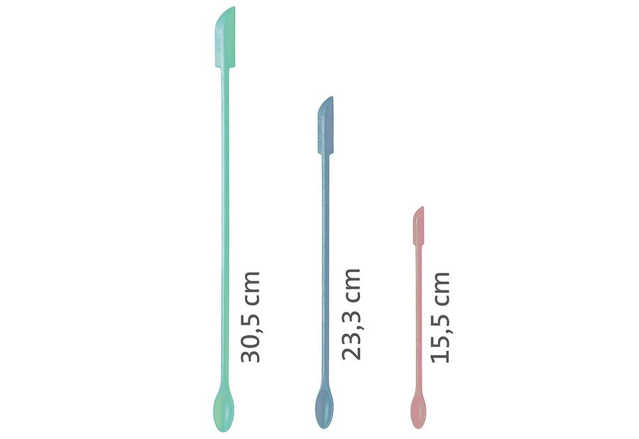 Silikon / Stahl, Inhalt: 1 x L 30,5 cm, 1 x L 23,3 cm und 1 x L 15,5 cm, ideal, um Reste aus schmalen Gläsern und Flaschen herauszuholen, unterschiedliche Schaber-Enden zum mühelosen Erreichen kleinster Ecken, spülmaschinengeeignet·grün, blau, rosa