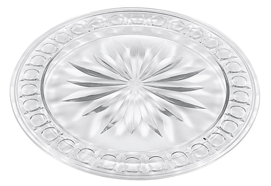 Polystyrol, glasklar, sieht aus wie Glas, bruchunempfindlich, glatte Form zum Servieren von Kuchen, Torten, Gebäck, Aufschnitt und Snacks· Ø 31 cm