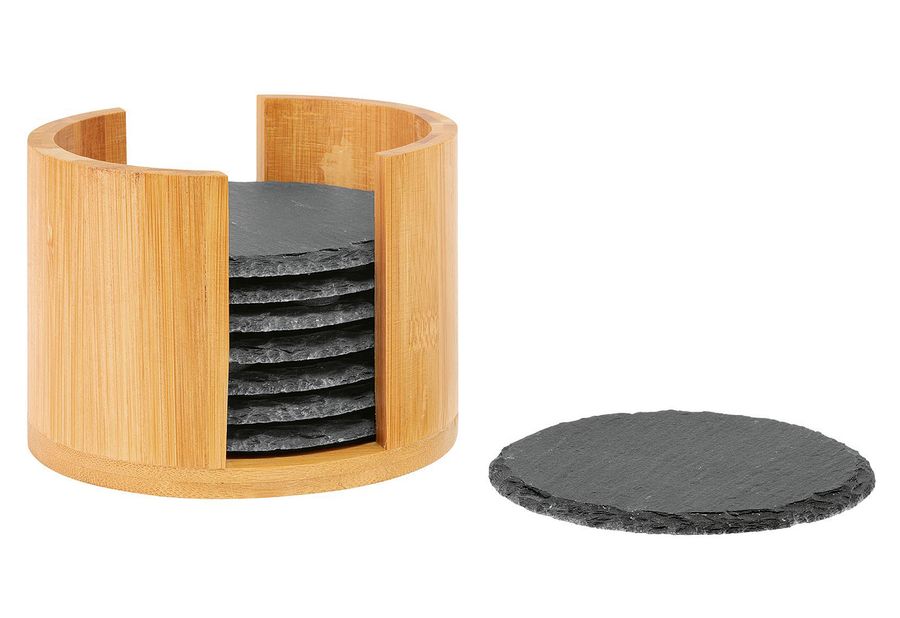WESTMARK Untersetzer Naturschiefer Ø10cm in Bambusbox 8Stück