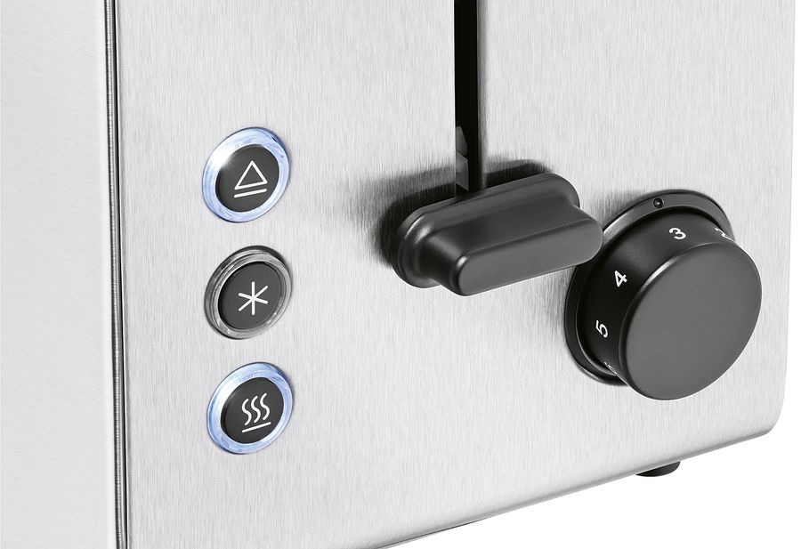7 einstellbare Bräunungsstufen und beleuchtete Funktionstasten (Stopp, Aufwärmen und Auftauen), mit wärmeisoliertem Cromargan®-Gehäuse mit seidenmatter Oberfläche, eingebaute Brotzentrierfunktion für gleichmäßige Bräunungsergebnisse auf zwei Scheiben (9 cm x 9 cm), integrierter Edelstahl-Brötchenaufsatz zum Aufbacken von Brötchen und Croissants, herausnehmbare Krümelschublade, integrierte Kabelaufwicklung (1 m Kabel), Leistung 860-1050 Watt, Schukostecker CEE 7/7·edelstahl (LxBxH): 281,2x186,8x152,6 mm