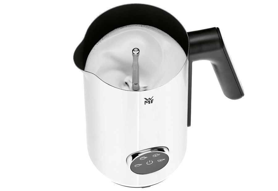 Gehäuse aus hochwertigem mattierten Cromargan und separatem Gerätesockel, inklusive LED-Beleuchtung und Kabelaufwicklung, 4 wählbare Programme für Milchschaumspezialitäten: cremig weicher Milchschaum für Cappuccino und Latte Macchiato, fester Milchschaum für Cappuccino und Latte Macchiato, kalter Milchschaum für Frappé, Cocktails, Eiskaffee und Desserts, heiße Milch für Milchkaffee, Kakao und heiße Schokolade, LED-Display, magnetisch gelagerter und entnehmbarer Rührarm sowie Antihaftbeschichtung des Behälters, Abschaltautomatik nach Programmende, Füllmengen: Milchschaum bis 150 ml, heiße Milch bis zu 250 ml