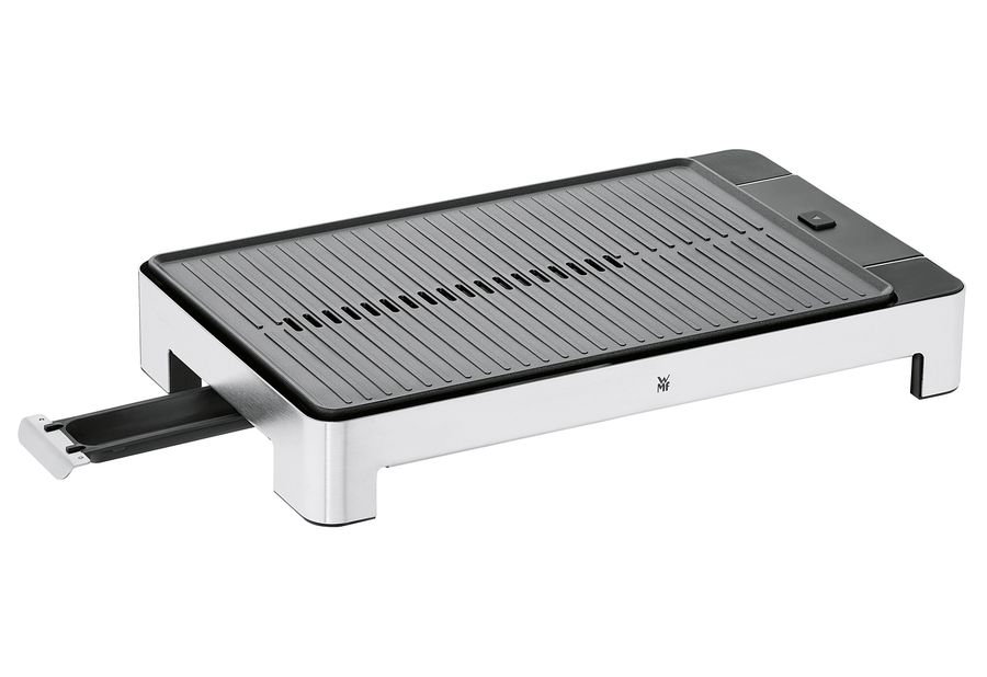 Cromargan®, leistungsstarke 2.000 Watt, variable Temperatureinstellung mit LED-Beleuchtung, antihaftbeschichtete und spülmaschinenfeste Aluminium Gussplatte mit integriertem Heizelement, große gerippte Grillfäche: ca. 27 cm x 41 cm, Easy Handling: Auf Knopfdruck einfaches Entnehmen und Einsetzen der Grillplatte, herausnehmbare Auffangschale, Schukostecker CEE 7/7