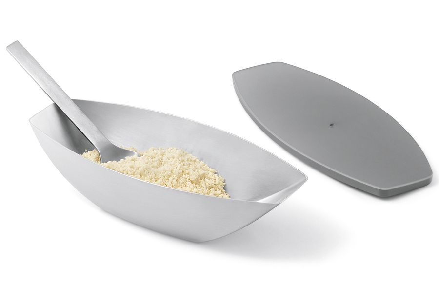 Edelstahl 18/10, matt gebürstet / Kunststoff, auch als Servierschale zu verwenden (HxBxT): 5,5x20,5x8,8 cm