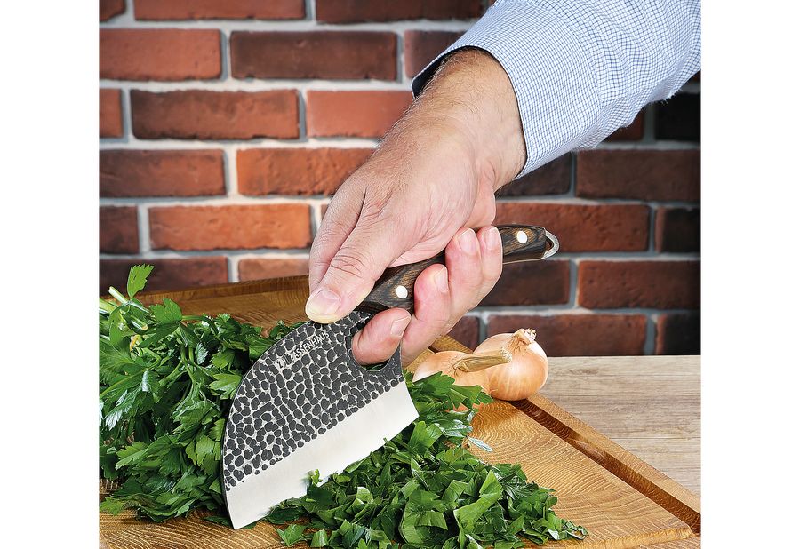 Außergewöhnliches Design trifft auf überzeugende, Funktion. Das handgefertigte Kochmesser von, ZASSENHAUS ist dank seiner Robustheit ideal in, der Küche sowie perfekt für den Outdoor-Einsatz., Der gebogene Griff und das Loch in der Klinge, sorgen für vollkommene Kontrolle und perfekte, Balance., inkl. Lederscheide mit praktischer Schlaufe zum, Befestigen an Gürteln, mit Aufhängeloch, Spezial-Klingenstahl / Griff aus Pakkaholz, Länge: 25,0 cm / Klingenlänge: 12,0 cm L 12 cm·Fachhandel exklusiv