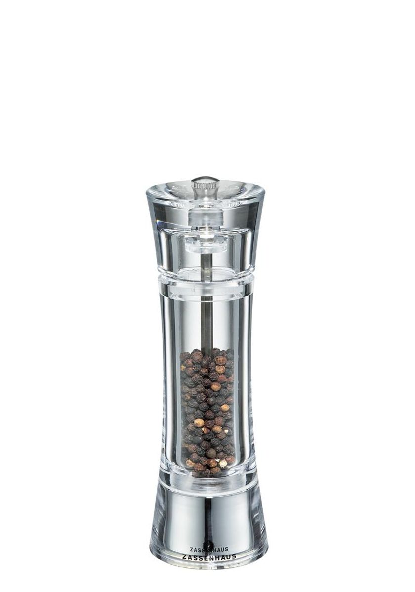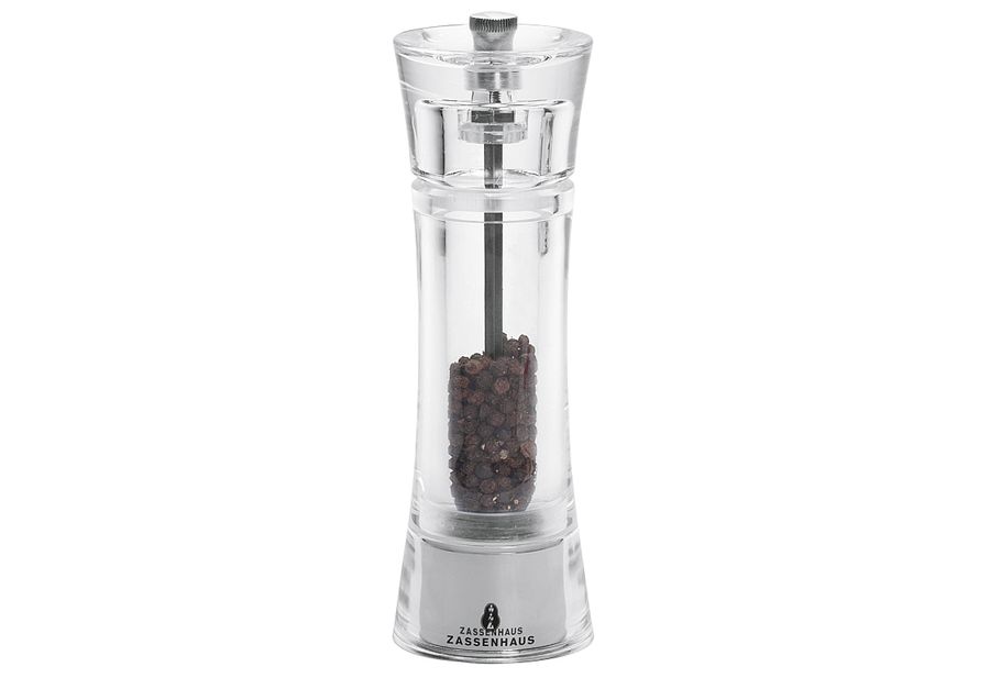 Acryl, original Zassenhaus-Qualitätsmahlwerk aus Hochleistungs-Keramik, perfekte Mahlgradeinstellung von pulverfein bis grob gemörsert, 25 Jahre Garantie auf das Mahlwerk (Mahlwerk - Made in Germany)· Ø 5,8 cm, H 18 cm·Fachhandel exklusiv·