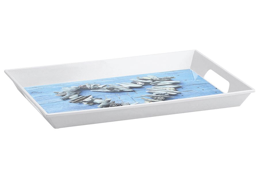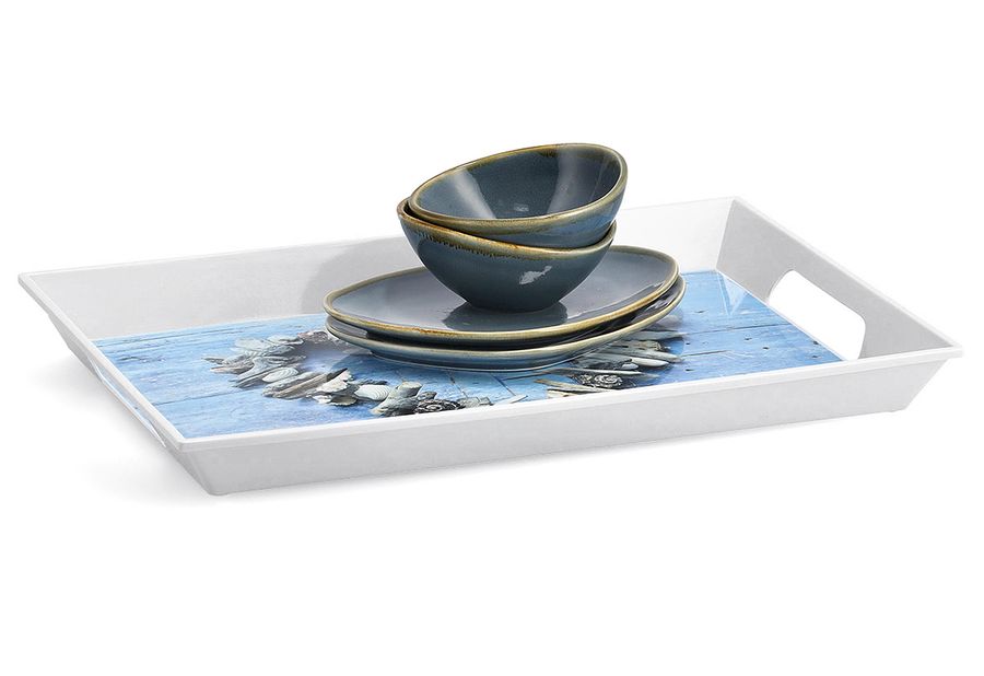 Melamin, mit erhöhtem Rand und zwei seitlichen Tragegriffen, abwaschbar·weiß (LxBxH): 50x35x4,7 cm