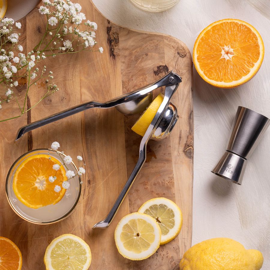 Die Viners Hochleistungszitronenpresse extrahiert mit Leichtigkeit Säfte aus einer Vielzahl von Zitrusfrüchten. Das Siebfach fängt Kerne und Schale auf und sorgt für eine gleichmäßige Safkonsistenz. Der ergonomisch geformte Griff bietet einen bequemen Halt beim Auspressen der Früchte.